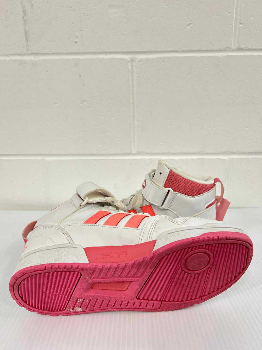 Adidas Postmove Women Size 7 White & Coral Like New High Top Sneakers- Brand = Adidas